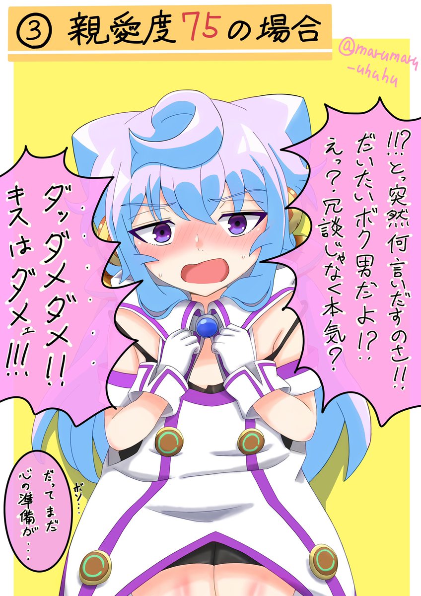 遅くなりましたが、描きました。 前に描いたやつの別の世界線の絵です。 とある条件を満たすと3号くんに怒られずに、こちらのルートに行けてその時のスチル……みたいな。 ところでこのゲームの発売日はいつですか……? #ハッカドール3号 twitter.com/marumaru_uhuhu…