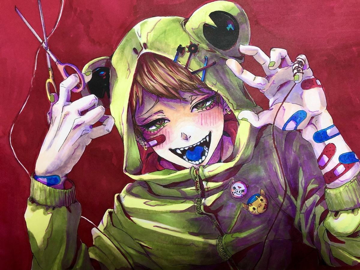 キュートなカノジョ風ハックくん(修正版) #キュートなカノジョ #秘密結社ヤルミナティー #ハック #ハック(秘密結社ヤルミナティー) #アナログイラスト #コピック pixiv.net/artworks/97224…