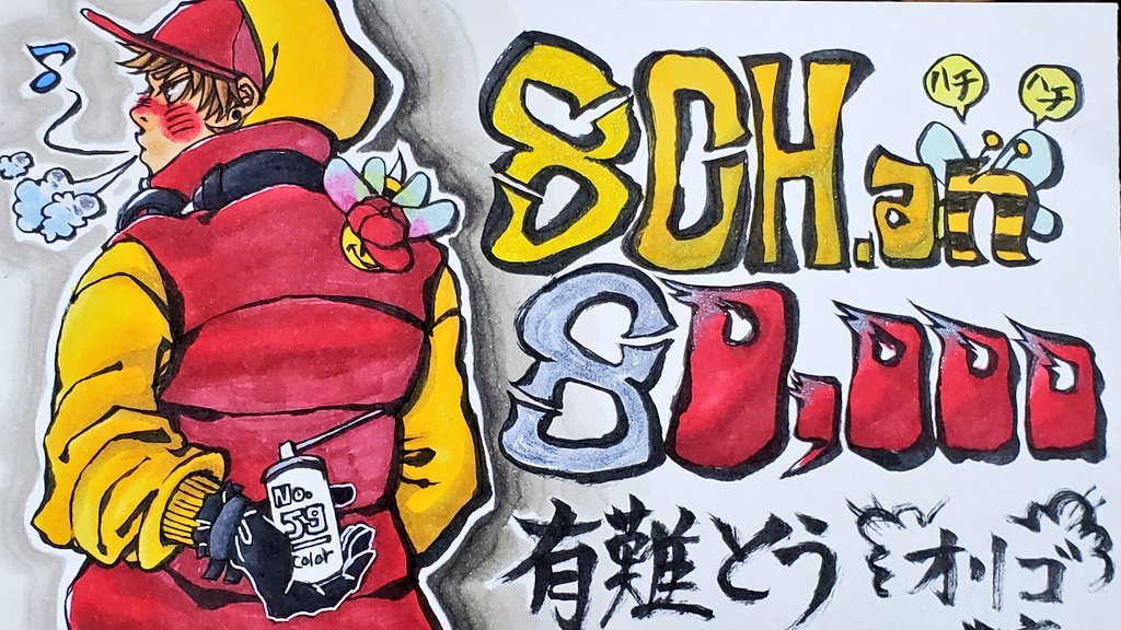 ハチ山(59)さんへ ✨Congratulations for getting 80,000 subscribers!!✨ ヤンキーじゃねぇよ!やんちーだよ!より #ハッチャンハチ万人 #ハッチャンの絵