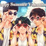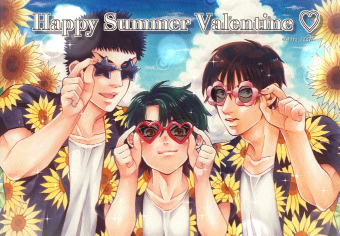 👓「今日は #ハッピーサマーバレンタイン だ!なぁ、海堂!?🌻」 🐍「い、乾先輩!俺は……カルガモの転んだやつが……🦆」 👓「んん!?」 🐍「い、いや!いくよ、大好き!💘」 🧢「lah la ~ ♪」 🌻Happy Summer Valentine🌻 \ご機嫌アロハMILK!/ #shirateni