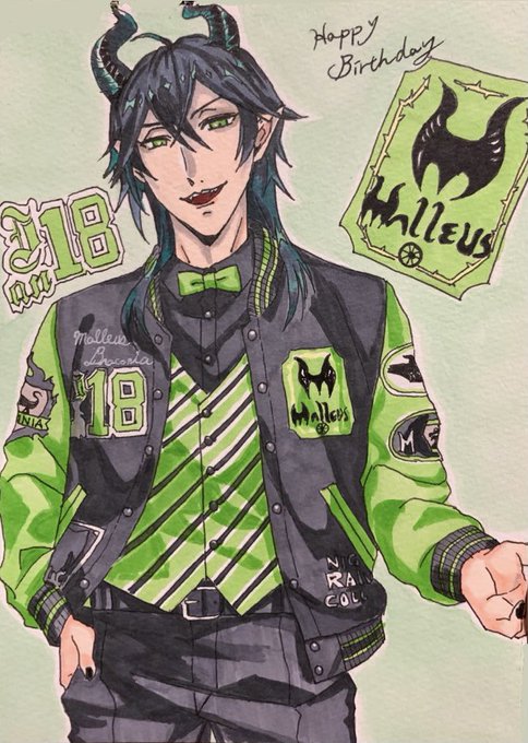 ディズニーゲーム #twistedwonderland #ツイステ 🦈Floid Leech:フロイド・リーチ 11.5 Birthday 2回目の🎂 スタジャンの色が無くて、色々混ぜて塗りました💦 お誕生日おめでとう🎉🎂 #ハッピーメモリアルフォトマンガイラスト #ツイステファンアート #フロイド・リーチ誕生祭2021