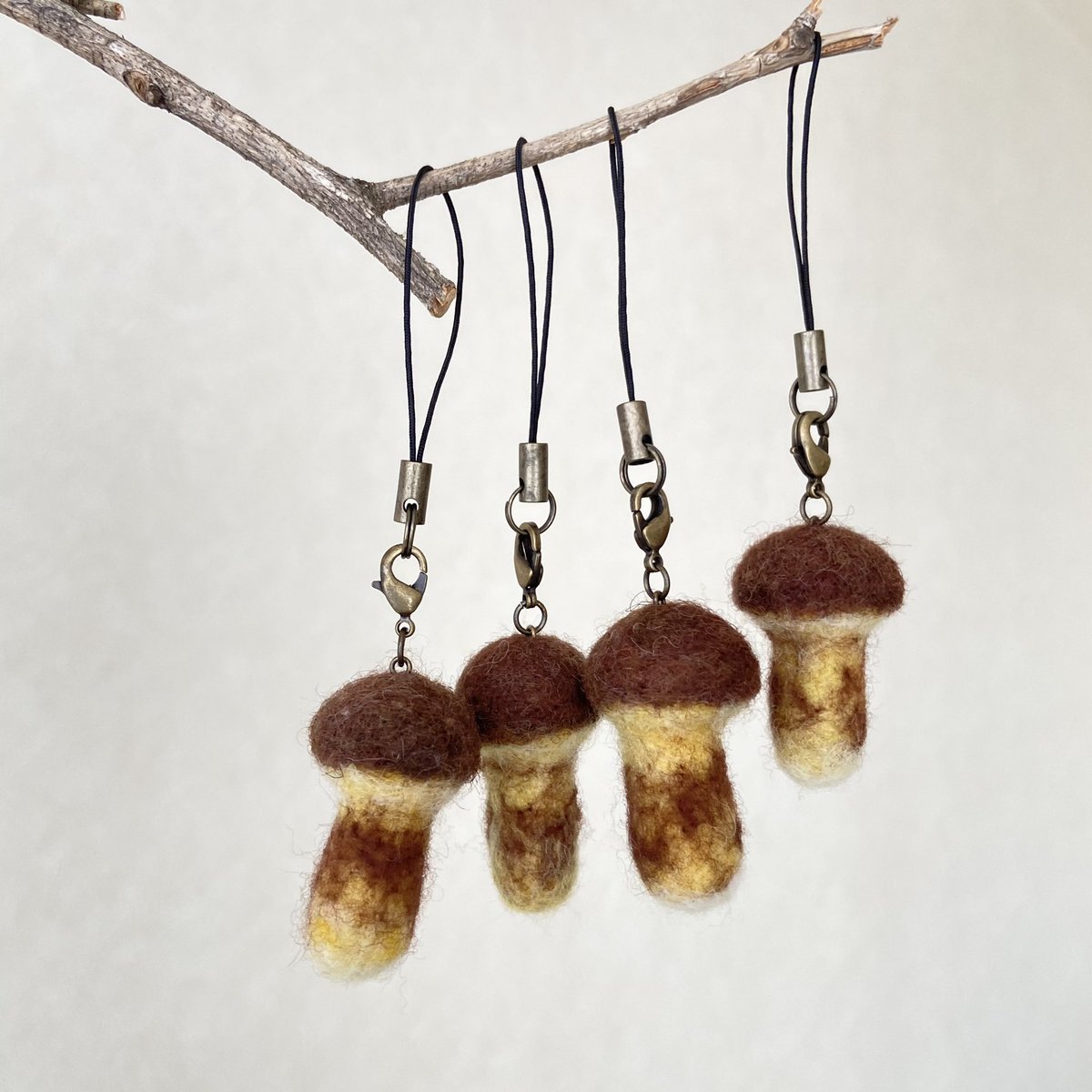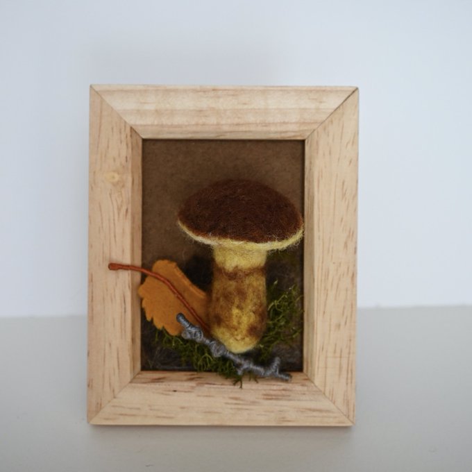 #羊毛フェルト の #ハナイグチ のチャームとフレームが一点ずつ手元に戻ってきました。 作品にご興味があればご連絡ください。 きのこのシーズンも最終盤。 来年の秋までの空白期間はフェルトのきのこを愛でてみては? #ひつじ草フェルト細工所
