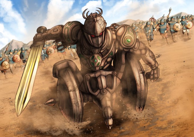 王の埴輪土 大陸で埴輪土同士の戦いが行われた時代ってこういう感じだったのかなという構図です。 #ハニワット #古代戦士ハニワット #イラスト #絵描きさんと繋がりたい #イラスト好きさんと繋がりたい #ドグーン祭り