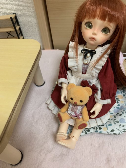おはようございます 今朝は天気イマイチ?? 📸小さいお嬢さんと🧸 #おはドル #ノードール・ノーライフ #ハニーベア #セリアドール #うちのこかわいい #ドールオーナーさんと繋がりたい #おはよう