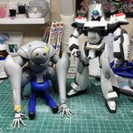 1/35 ハヌマーン 一通りパーツがそろってきました。 大きく分けて足のヒラ、顔周り、お尻の装飾が残ってます。 コックピットは開きません😂 1/35でAVS-98と並べてみる。 サイズはコミック内のイメージにできたかな。 #ハヌマーン #パトレイバー #パトレイバー模型部