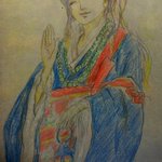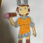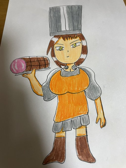 #一日一絵 #毎日絵一枚上げる #イラスト #色鉛筆画 #オリキャラ #イラスト好きな人と繋がりたい #絵描きさんと繋がりたい #ハムの日 肉堂仁恵季 肉屋の肉堂の主人 得意料理はとんかつなど 好物はハムで最近は豚肉料理をしてるとか