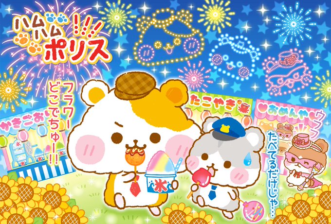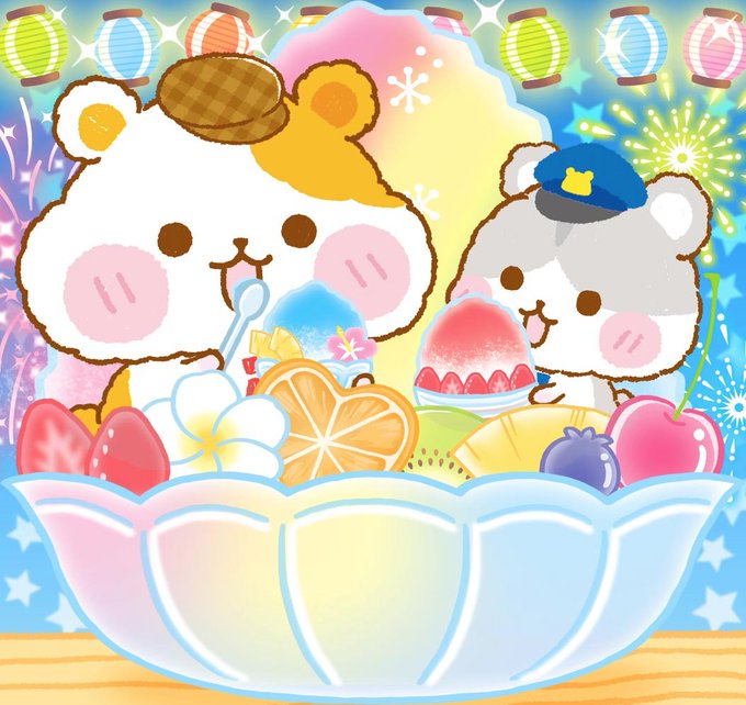 今日から8月!!おいしいもの食べながらお仕事がんばりまちゅ〜🐹❣️🍧ハムハム打ち上げ花火にちゅうもく〜🎆 #花火の日 #ハムスター #ハムハムポリス #イラスト #絵描きさんと繋がりたい #イラスト好きな人と繋がりたい