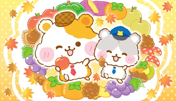 秋といえば食欲の秋でちゅ🐹❣️ もりもりいっぱい食べるでちゅよ〜🍎🍏🍇🥝🍠✨ #秋分の日 #ハムスター #ハムハムポリス #イラスト #絵描きさんと繋がりたい #イラスト好きな人と繋がりたい