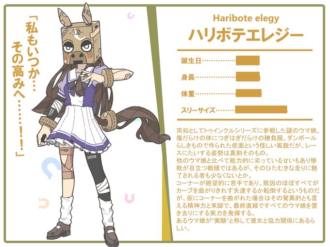 ウマ娘JAPAN WORLD CUP 幾千もの敗走を重ねた彼女は今 "本物"の輝きを手に入れる。 フォロワーさんでちらほらこのハリボテエレジーをコスプレで再現しようと試みてる方がいるのでもっと広まってくれーー!!!!!! #ウマ娘プリティーダービー #オリジナルウマ娘 #ハリボテエレジー
