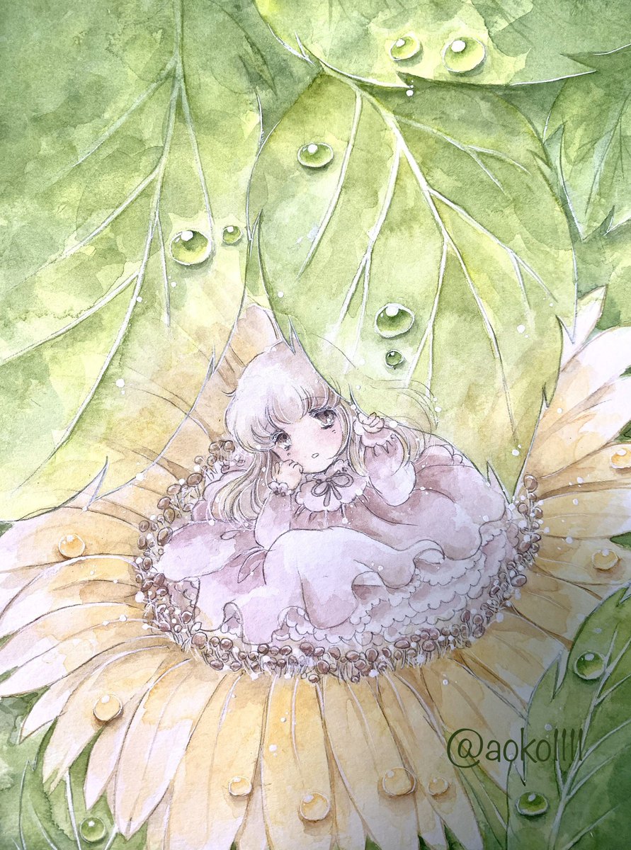 #ハルイト_ひと夏ひと暁 Galleryハルイト様(@gallery_haruito ) の企画に参加させていただきます。 夏の朝、朝露が顔に落ちて目が覚めちゃった親指姫。 まだちょっと眠そう💕