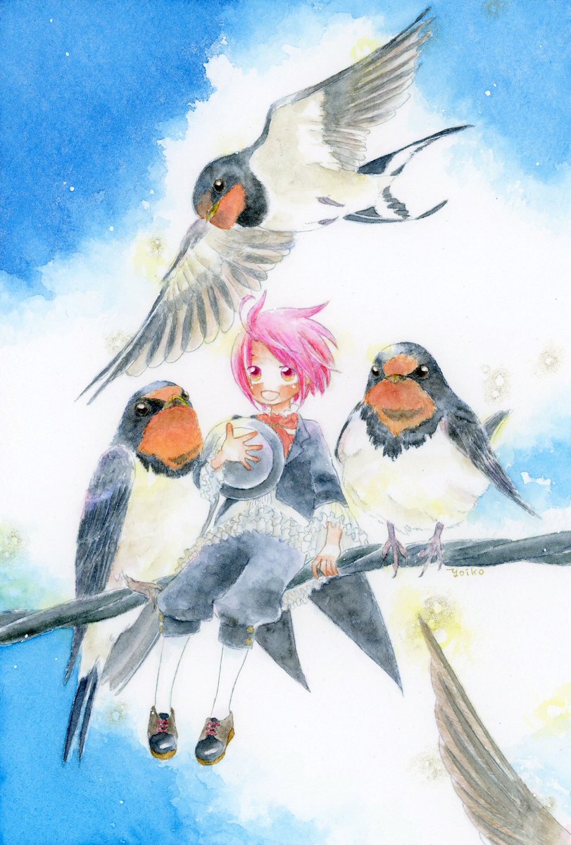 Galleryハルイト様(@gallery_haruito)の #ハルイト_君と空と に参加させていただきます。 テーマは「鳥」!! TLを鳥でいっぱいにしようという、素晴らしすぎる企画です😍✨✨ 絵描き様方ぜひぜひ! 「君と空と」という展示タイトルから、旧作じゃ駄目だ...!と頑張って描いた燕ちゃんです。