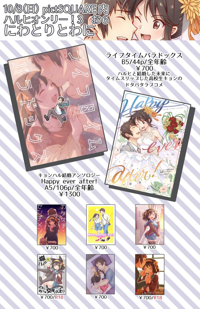 明日の #ハルヒオンリー2022 お品書きです 自家通販用の店舗をBOOTHにて期間限定でオープンしますので、そこからご購入頂く形になります〜既に委託書店では完売している作品もありますので、ぜひこの機会をご利用ください! またこれとは別に3P程の短めキョンハル漫画を無料公開予定です!