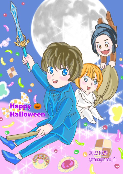 「青い月夜の脳人のコ」脳人の皆さんもハロウィンが楽しみなようです。バロンソード、スピカタクトに似てるかも… #ドンブラザーズ #ソノイ #ソノニ #ソノザ #ハロウィンイラスト2022 #ハロウィンアートフェス