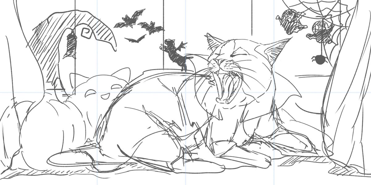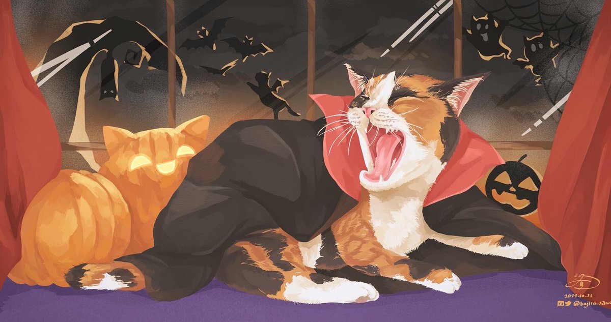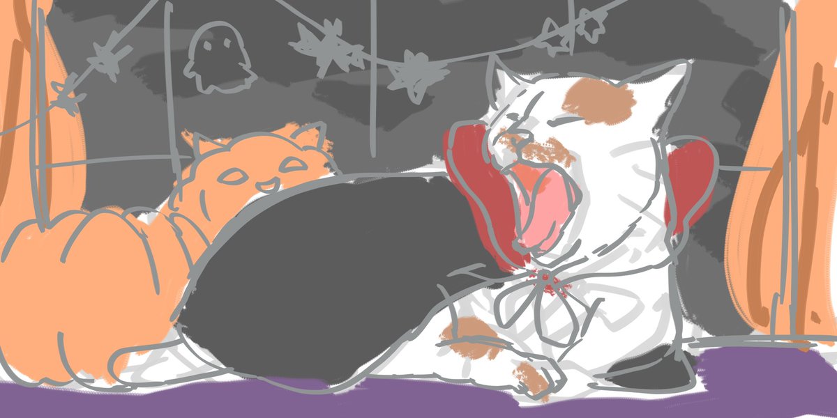 絶対ここから加筆修正入るけど、11月中に終わるかも怪しくなってきたので一旦あげちゃっていい?😂😂 遅刻どころでは無いハロウィンです() #イラスト #イラスト好きな人と繋がりたい #ハロウィン2022 #ハロウィンイラスト #絵柄が好みって人がいたらいいなぁ