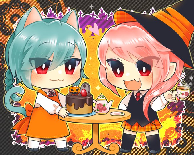 「「に゛ゃんだおまえー!?」」 今更ハロウィン! 思い付いたのが一週間くらい前だから仕方ないよねっ 仮装したつもりが呪われて一体化しちゃった本末転倒?な二人(気付いてない) なんかポケモンみたいなったかもw #ハロウィンイラスト #絵描きさんと繋がりたい #みんなで楽しむTwitter展覧会