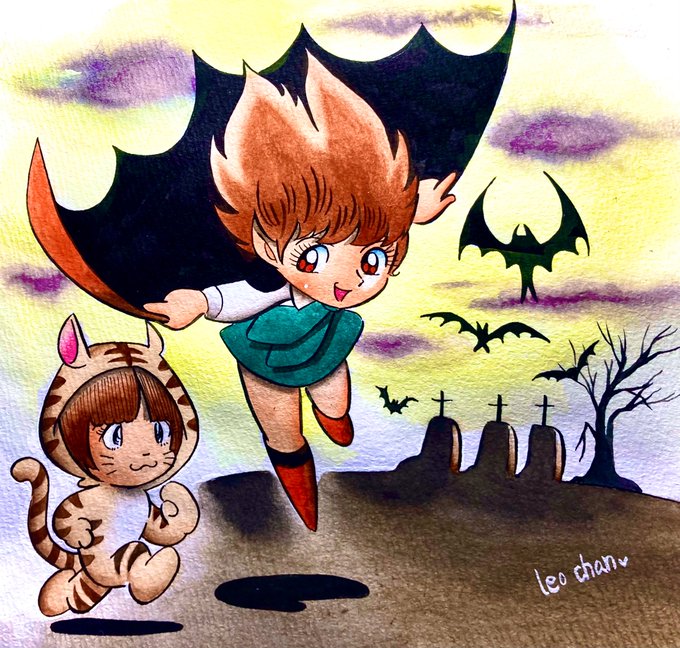 ハッピー♡ハロウィン🎃 皆さま、よい1日を…♫ #ハロウィンイラスト展覧会2022 #カボチャ #手塚治虫 #火の鳥・ブラックジャック・リボンの騎士・鉄腕アトム #三つ目がとおる・レオ #水彩画 #アナログ #イラスト王国 #ニジイラS