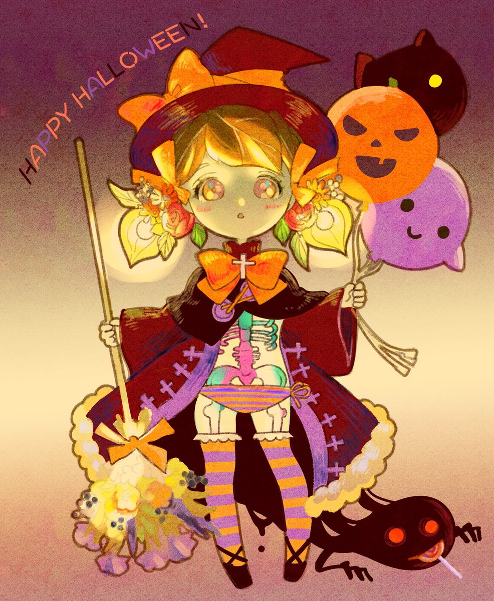 魔女っ子透明標本ちゃん。 スワッグの箒に乗ってひとっ飛び。 お菓子は黒い何かが独り占め。 HAPPY HALLOWEEN!!! #halloween2021 #ハロウィンイラスト2021