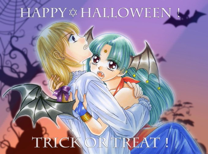 #ハロウィンイラスト2021 間に合いました💦 吸血鬼テシャの闇討ちに遭う悪魔センフィスです(笑)🦇👿 中学一年の時にハロウィンを知ってから大好きなイベントです。 お小遣いでハロウィンの下敷きを買ったなぁ…。ほんとに嬉しかった。 背景は素敵なフリー素材をお借りしました。一目惚れです☺️🙏✨
