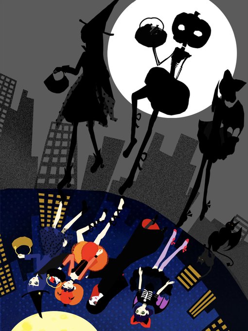 みなさま、こんばんは🌃🌛 昨日は2枚のハロウィンイラストをみてくださり、いいねやRTありがとうございました🙇♀️ こちらの絵は、ひっくり返すとまた印象変わるのですよ🎃💀🦇 #ハロウィンキャラ百鬼夜行イラストフェス2022 #ハロウィン #創作イラスト #illustration #halloween
