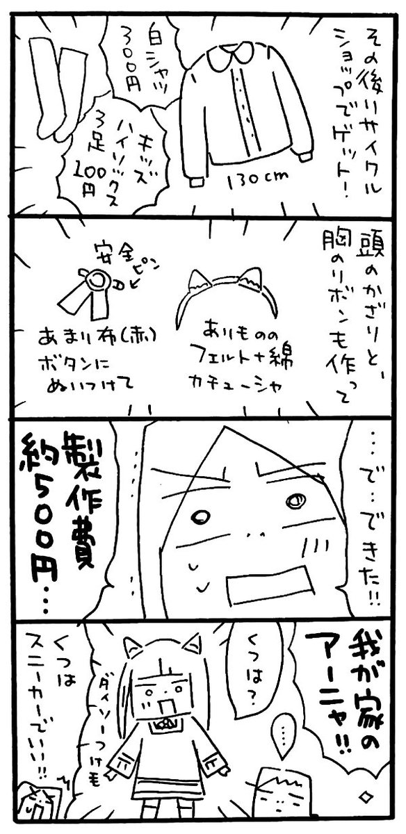 🎃6 制作費約500円で出来たアーニャコス 続く #ハロウィン #ハロウィンコスプレ #コスプレ #アーニャ #Cosplay #Halloween #スパイファミリー #双子 #4コマ #4コマ漫画 #漫画 #ハンドメイド #イラスト #エッセイ #イラスト好きな人と繋がりたい #絵描きさんと繫がりたい #漫画が読めるハッシュタグ