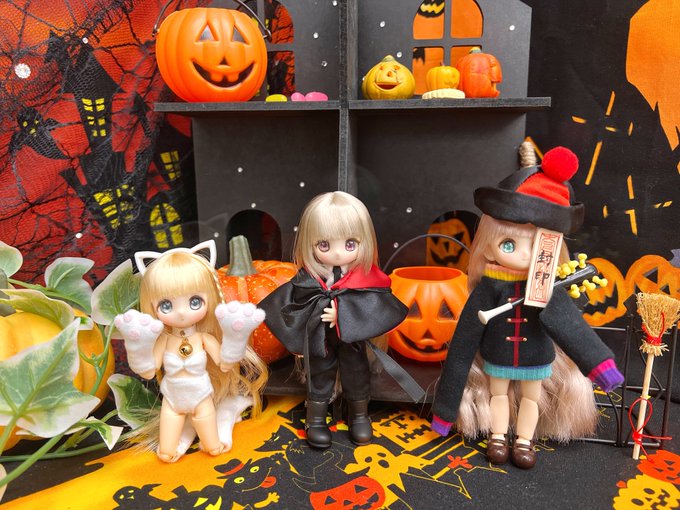 お題 [ハロウィン] 自分は混ざれないけど、うちの子達が楽しそうならそれでいいんだ |´-`)チラッ 友達できてよかったね🎃 #今夜のドール撮影120分一本勝負 #ねんどろいどどーる #ドールでハロウィン #ハロウィンドール撮影2022