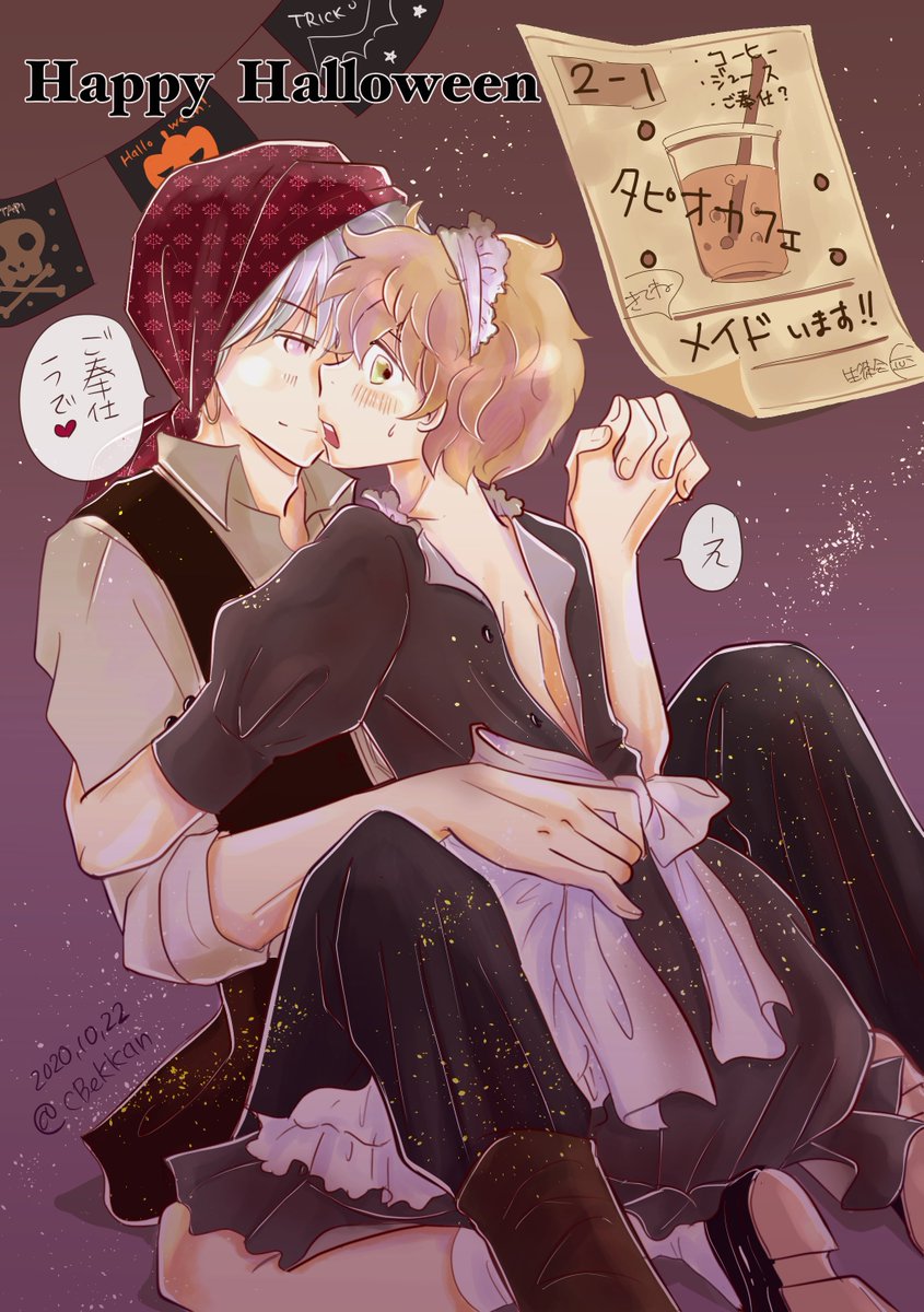 #ハロウィン学園祭2021 #いつもありがとうございます 去年の焼き直しイラストだけど、ちゃんと塗ってみたかったので💕 仕事しなさそうな執事とメイド💕 お誕生日お祝いくださったみなさまありがとうございます✨ゆるっとお返事させてください🙏 楽しい漫画やイラスト漬けの毎日を送れますように☺️