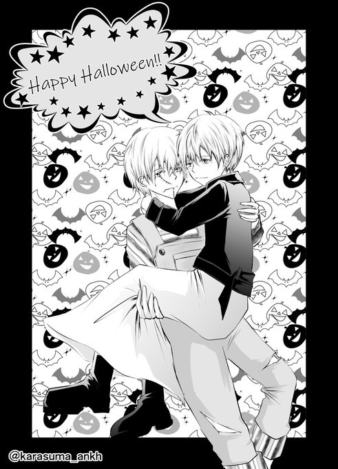 今年のハロウィンはうちの死霊ガチ勢、シリルとトーコをコスプレさせてみました!現代だったら中学生と高校生なんだなぁ。 #ハロウィン学園祭2021 #ハロウィン #ハロウィンイラスト #イラスト #創作
