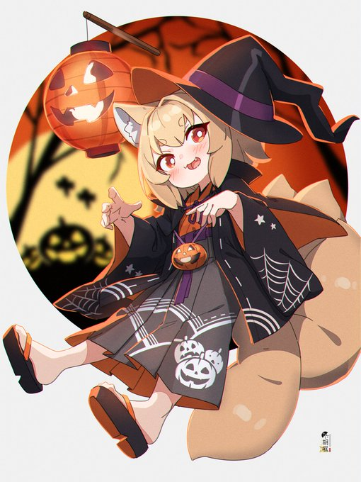 ハロウィンもいよいよ明日なので、これまで公開をがまんしてたイラストを公開です! 和風ハロウィンのイラストを九六胡椒先生(@96kosyou_28)に描いてもらいました🐾 魔法(妖力)でお菓子をくれなきゃいたずらしちゃいますよ?🍬🦊🍫 #ハロウィン #ハロウィン展示会2021