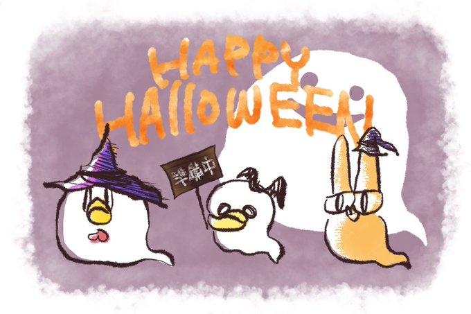 『ハロウィン準備中』 ハロウィンって何する日か知らないけど、とろあえず仮装しておこう、とか思ってそうな3人🐰🐦🐔 #ハロウィン準備 #ハロウィン #みんなで楽しむTwitter展覧会 #sns秋の芸術祭2022 #リップバニー