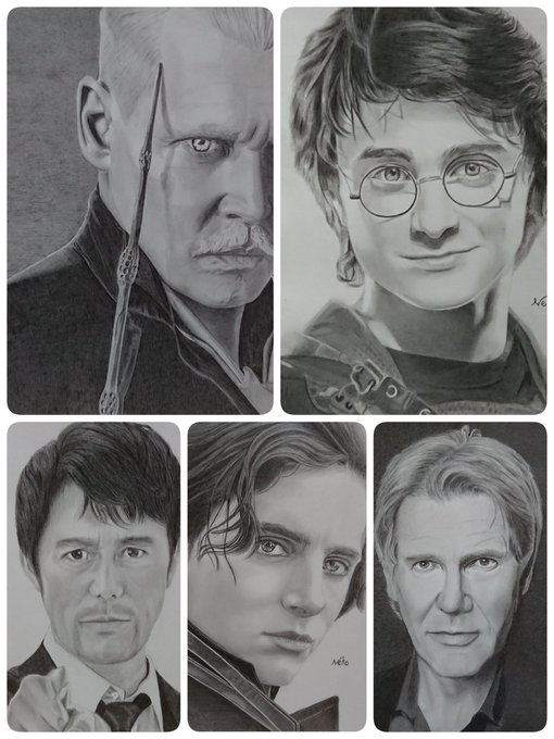 #ハンサムの日 おはようございます☀ 素敵な週末をお過ごしください✨✨🎐 (ง •̀_•́)งアツサニマケナイデ~ #鉛筆画 #シャーペン画 #模写 #過去絵 #ジョニー・デップ #ダニエル・ラドクリフ #阿部寛 #ティモシー・シャラメ #ハリソン・フォード