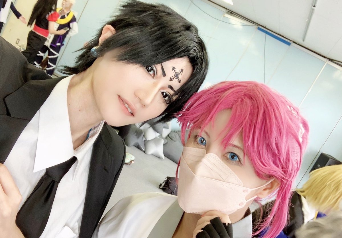 ゆめキルアと2ショット? 【cos注意】 当日は朝の更衣室からずっと隣スペで最後の更衣室まで大変お世話になりました😭🙏 宣言通りめちゃくちゃ構っていただいたのです💪 心霊写真みたいにレオリオいるの本当に笑った😂 キルア→ゆめ様@0806_xoxo #ハンターオンリー2022