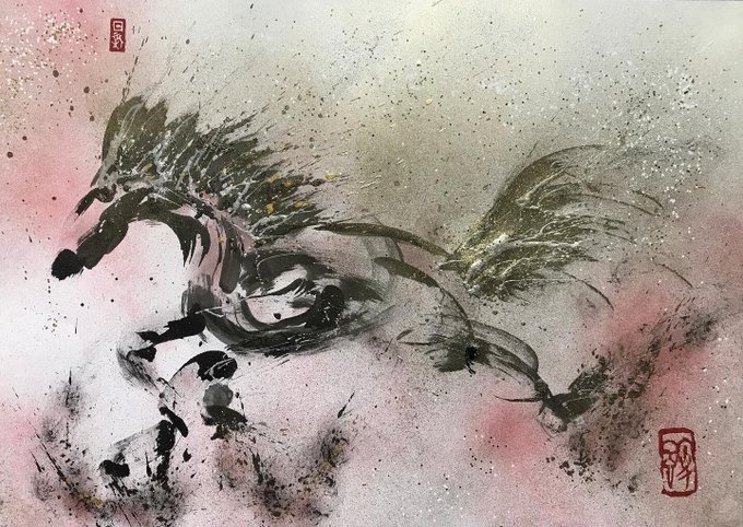 自由に駆け回る馬を墨絵にて表現 また乗馬行きたいな〜〜〜 ホームページ shusumie.com 茶×墨コラボ marukyou.shop 提灯×墨絵コラボ wataya-online.com #筆を使わない墨絵師 #ハンドドローイング墨絵 #handdrawing #生きる墨絵