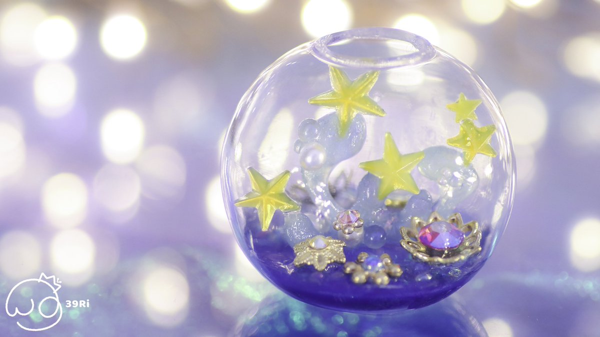 記憶のまち【星空鉱石】 朝日に照らされる星空鉱石は、ライトアップとはまた違う良さがあります♪ 青色がより鮮やかにハッキリと見えガラスの透明感も綺麗ですね✨ #ハンドメイドブルー #ガラス