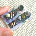 #ハンドメイドブルー 青色や葵紫、グリーンは好きな色なので… 作品の中でもブルー系は多めだと思います☺☀️ ちなみに、青空や新緑も大好きです🏞️✨ #よもぎミニ #ミニチュアフード #ミニチュア #ハンドメイド #ドールオーナーさんと繋がりたい