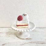 いちごのショートケーキに ちょっこり文鳥さん🍓 平面ブローチです 「Handmade MAKER'S with minne」 4月28日(木)・29日(金・祝) 東京ビッグサイト minne-26 #羊毛フェルト #文鳥 #ハンドメイドメイカーズ