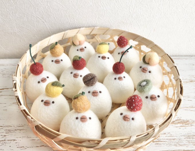 クリーム文鳥さん♡ ワイワイしてます^ ^ それぞれ頭に おいしいもののってます 「Handmade MAKER'S with minne」 4月28日(木)・29日(金・祝) 東京ビッグサイト minne-26 #ハンドメイドメイカーズ #羊毛フェルト #文鳥