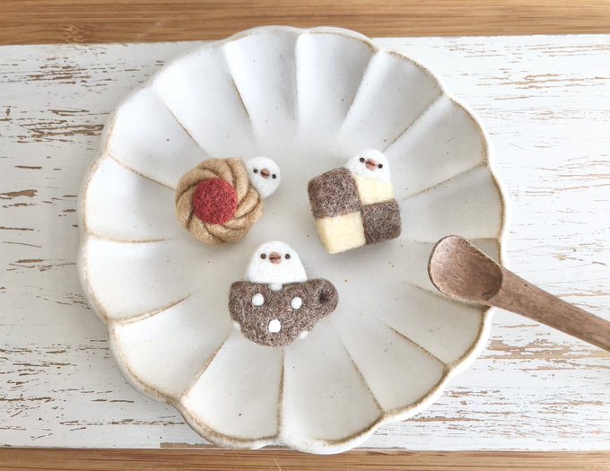 あまいこたちブローチ♡ 3色団子文鳥さん プリンからひょっこり文鳥さん 溶けかかったソフトクリーム文鳥さん 「Handmade MAKER'S with minne」 4月28日(木)・29日(金・祝) 東京ビッグサイト minne-26 #ハンドメイドメイカーズ #羊毛フェルト #文鳥