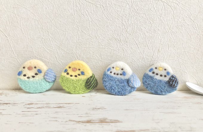 セキセイインコちゃんブローチ♡ 羽はツイード生地で作ってます^ ^ 「Handmade MAKER'S with minne」 東京ビッグサイト 4月28日(木)・29日(金・祝) minne-26 #セキセイインコ #羊毛フェルト #ハンドメイドメイカーズ