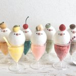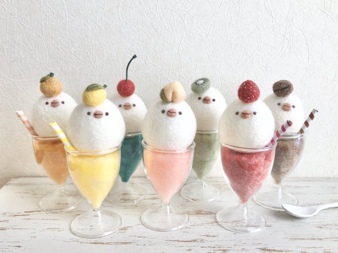 クリームフロート文鳥さん♡ それぞれしましまストロー付きです 「Handmade MAKER'S with minne」 4月28日(木)・29日(金・祝) 東京ビッグサイト minne-26ブース #ハンドメイドメイカーズ #羊毛フェルト #文鳥