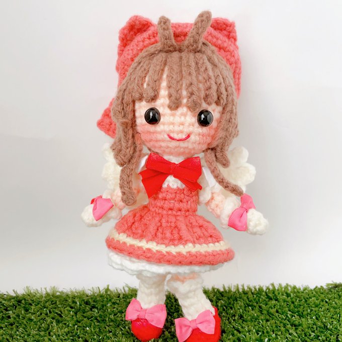 【 #ヒトガタ展2023 お品書き】 イチゴチョコは画像の11点を出品します。 ドレスの子は前回も展示してもらったのですが、昨年はコロナ禍でご来場が叶わなかった方にも見ていただけたらと思っています¨̮♡︎ #あみぐるみ #ハンドメイド作品