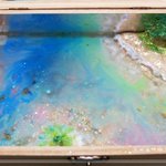 南の島のレイヤーアートを作っています。 ガラス絵の具で海の水を流してみました🌊 乾いたどうなるかな? #ハンドメイド作家の夏が見たい #夏の創作クラスタフォロー祭 #8月になったのでフォロワーさんに自己紹介しようぜ