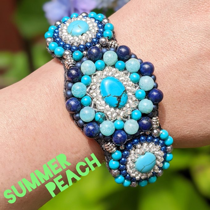 試作品第1号出来た😆✨ 夏にガッツリかっこいいターコイズのブレスレット✨ 少しずつ形になってきました😊👍 他のカラーも作ってみようかな😆✨ #ハンドメイド好きさんとつながりたい #ターコイズ #夏の創作クラスタフォロー祭り summerpeach's GALLERY #minne minne.com/@abibubagon