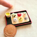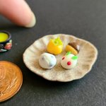 #冬を感じる作品か画像を貼ってみる 冬といえば、和菓子の うさぎ饅頭とかでしょうか(* ´ ▽ ` *)⁉️ 雪うさぎ🐰 #よもぎミニ #ミニチュアフード #ミニチュア #ハンドメイド好きさんと繋がりたい #ドールオーナーさんと繋がりたい