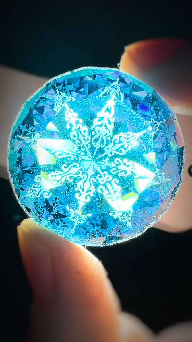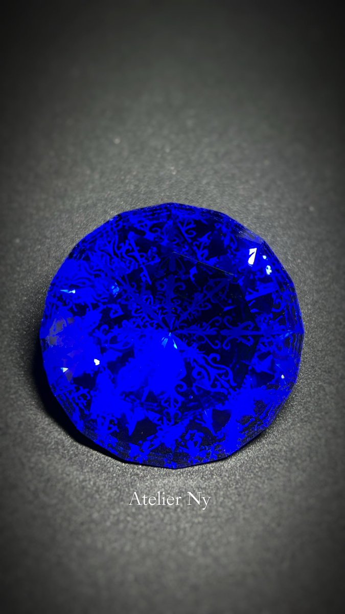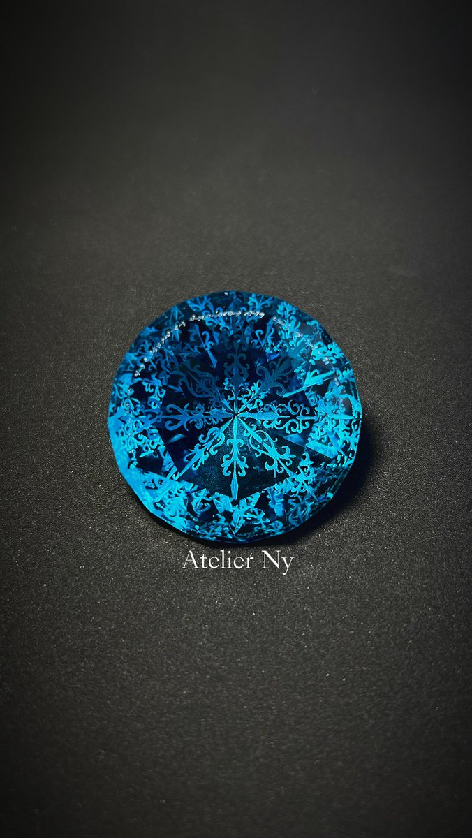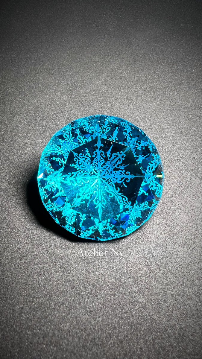深いブルーの子。 電動ルーターを使用してフリーハンドの手彫りで制作しています。 大きさですが直径40mmぐらいです。 #ハンドメイド #ハンドメイド好きさんと繋がりたい #ガラスエングレービング