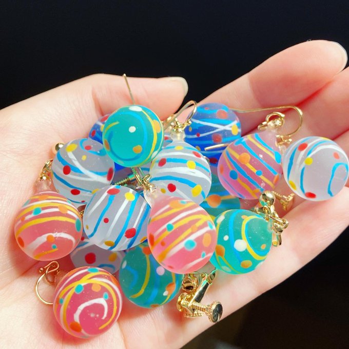 水風船☺️ マット加工にハマっています! #レジン #レジンアクセサリー #ハンドメイド #ハンドメイド好きさんと繋がりたい #レジン好きの人と繋がりたい #パジコ #星の雫 #地球屋アクセサリー #handmadejewelry #ハンドメイドアクセサリー