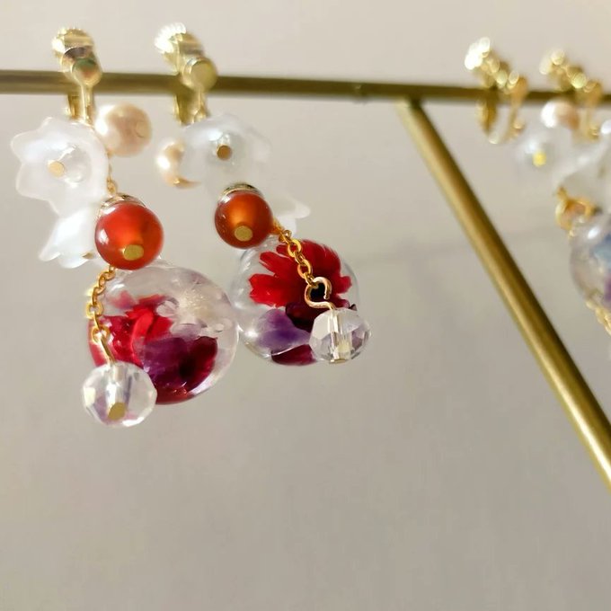 小さなガラスドームのハーバリウムに天然石を入れてアクセサリーを作っています🌸 ゆらゆら揺れるハーバリウムと色々な表情を見せる天然石に癒やされませんか✨ #ハンドメイド #ハーバリウム #天然石アクセサリー #ハンドメイド好きさんと繋がりたい #作品を載せて自分の作品を知ってもらおう
