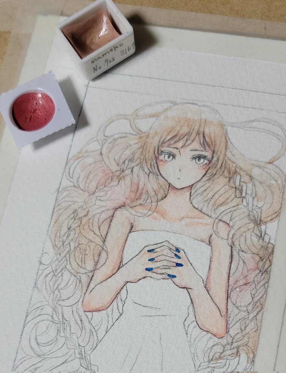 #ハンドメイド絵の具を使って描いてみた 鉛筆ノヲトさん(@enpitv)のプレゼント企画でスノーフェアリーパレットが当選したので描いてみました! 絵の具の名前にならって雪の妖精イメージです。 肌色はメーカーの絵の具ですが、それ以外は鉛筆ノヲトさんの絵の具のみ使用しています。 →続