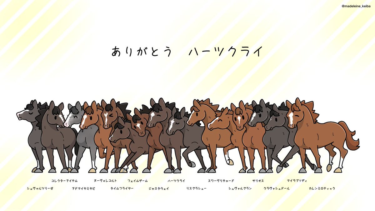 ディープとハーツクライの再会は今年3月。そこからふたりで切り盛りしている様子です。とにかく優しい世界にと奮闘中。 (あとその前のディープインパクト記念でアスクビクターモアが勝った時の) #にじのはしの小さいおはなし #ディープインパクト #ハーツクライ twitter.com/makoto_tsujii/…