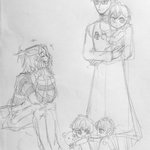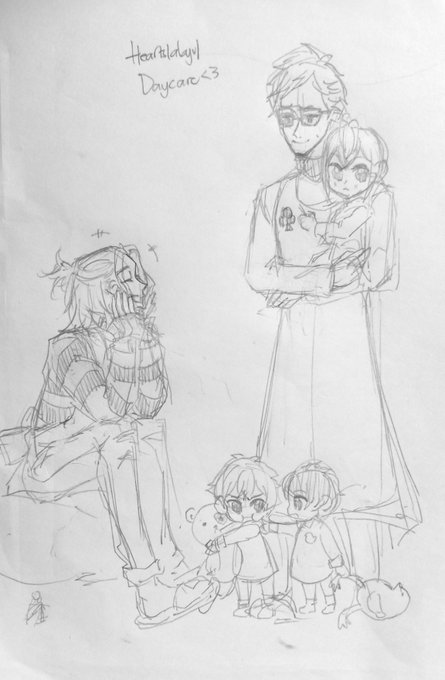 #ツイステッドワンダーランド #ツイステ #ツイステイラスト #ハーツラビュル寮 #リドルローズハート #トレイクローバー #ケイトダイヤモンド #エーストラッポラ #デューススペード やぁっと出来た! もう...無理...←🤣 #凸がき #スケッチブック #模写修行 #水彩画イラスト
