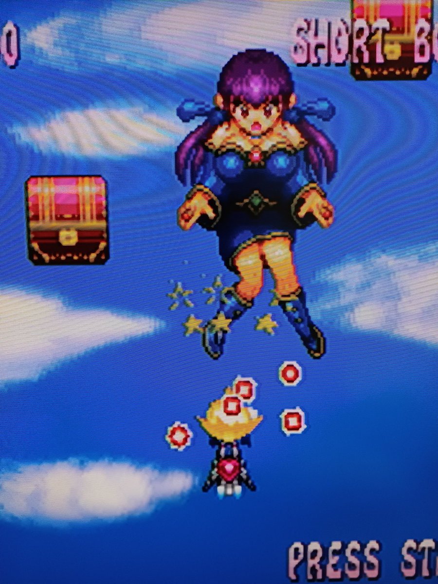#ハーティーパイロッツ のボスキャラ ツインテール魔法使い 高飛車人魚姫 ちんまり巫女 目隠れ体操服 なんじゃこのマニアックなキャラ達は(笑) しかもキャストオフ脱衣(一部破け)もあるという(笑) あと二人はどうなる!? #ドット絵 #pixelart #デザエモン #シューティングゲーム #STG